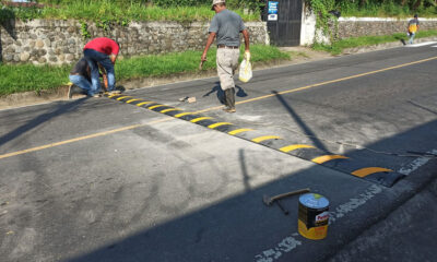 Para moderar la velocidad de los pilotos automovilistas en salida hacia Santo Tomás La Unión se coloco señalizacion sobre la carretera y se pinto teniendo como...
