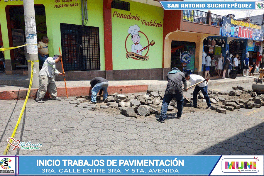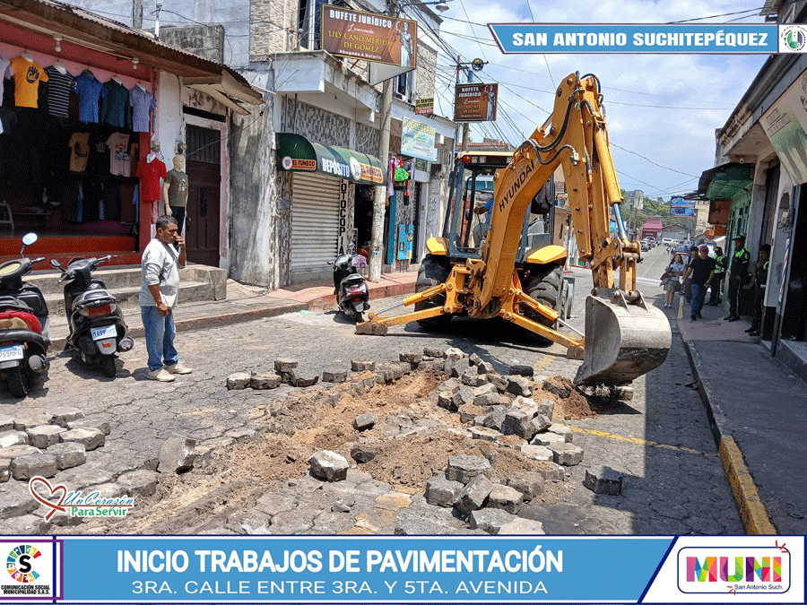 Este viernes 21 de marzo dieron inicio los trabajos de levantado de adoquín en la 3ra. Calle, entre 3ra. Y 5ta. Avenida de nuestra ciudad.